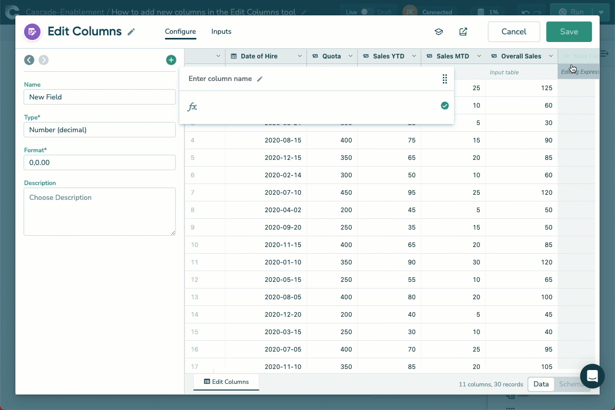 Adding new columns to your data table in Cascade is simple.