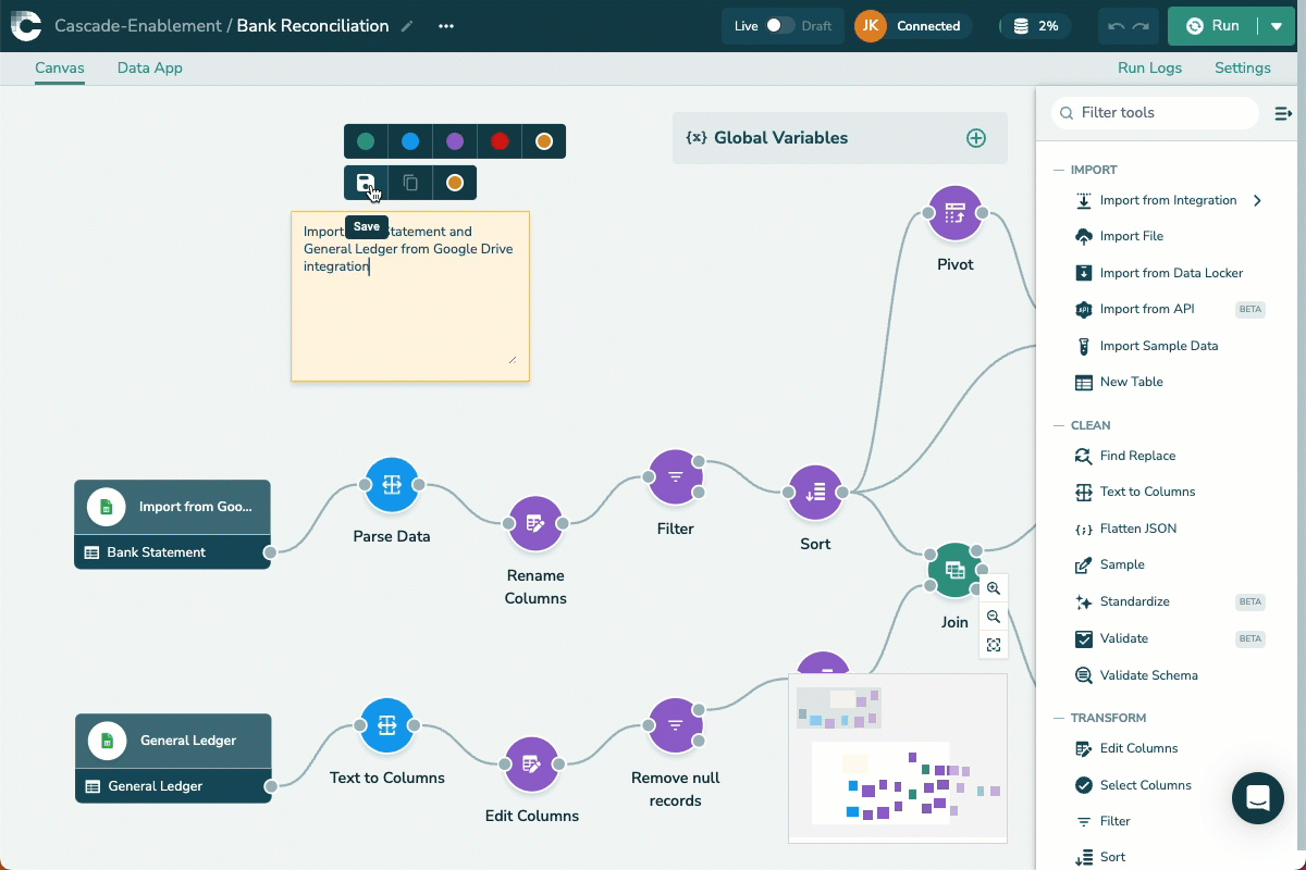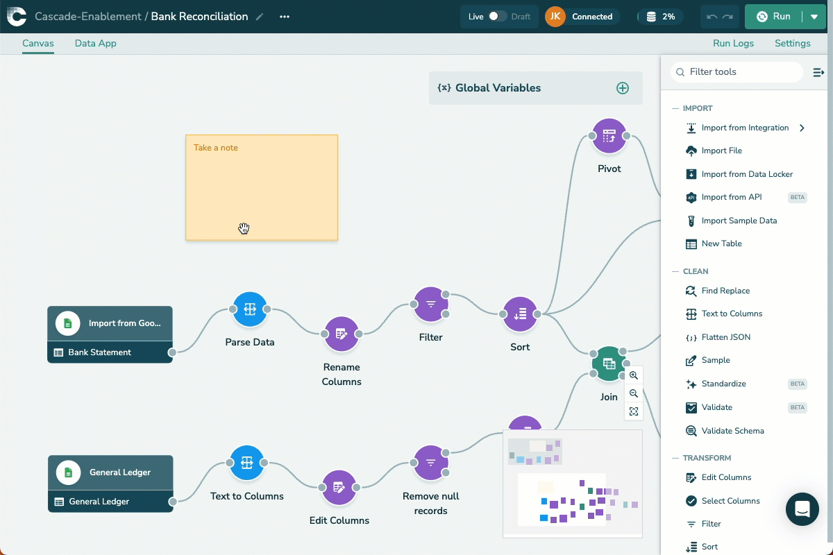 Cascade stands out from generic spreadsheets due to its capacity to document processes and arrange workflows. This can be done by renaming tools or leaving a substantial message or link on the Canvas.
